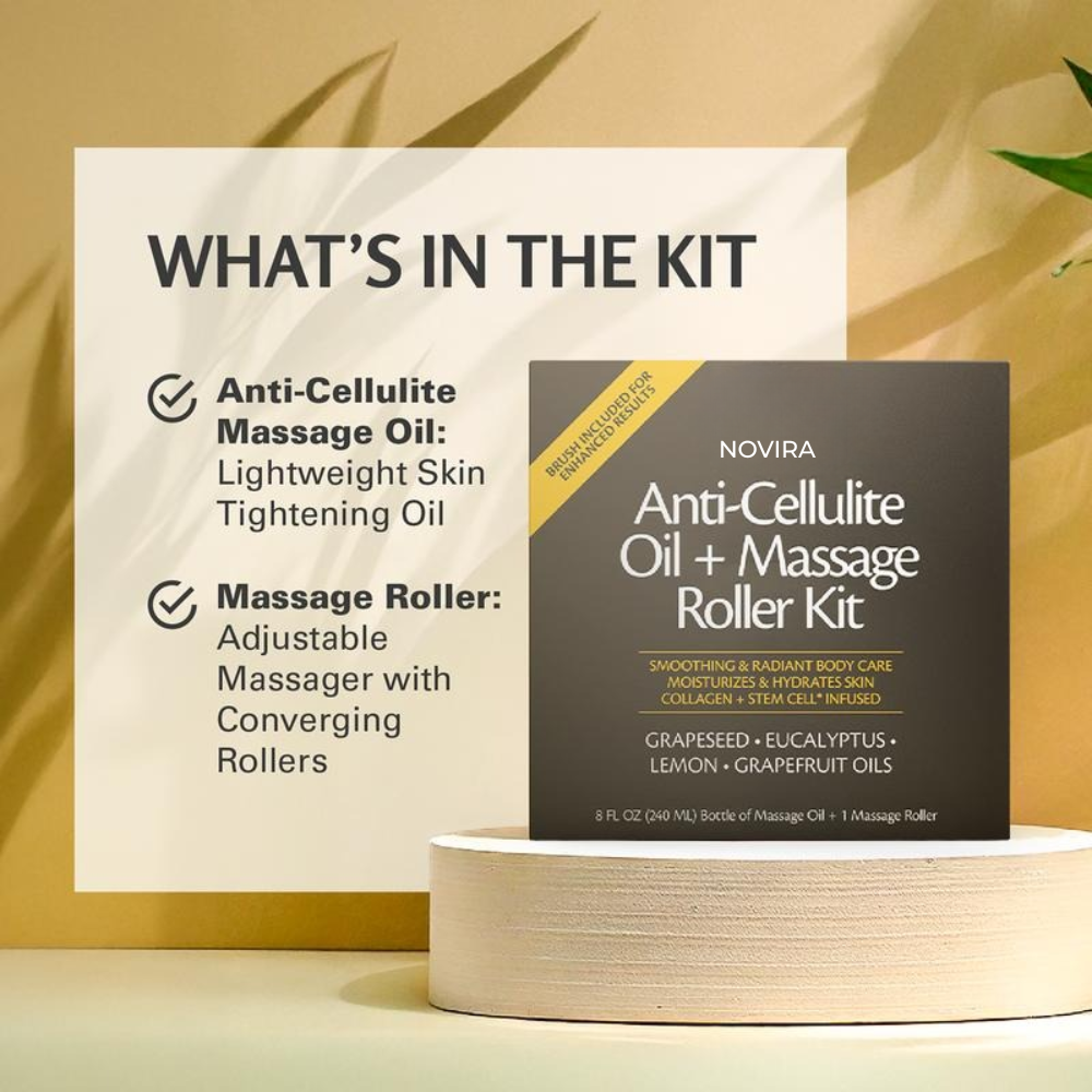 Novira™ Anti-Cellulite Massage Oil helps activate your skin’s natural detox and circulation processes—supporting fat breakdown, improving skin elasticity, and visibly reducing cellulite, especially in areas like thighs, hips, and buttocks.